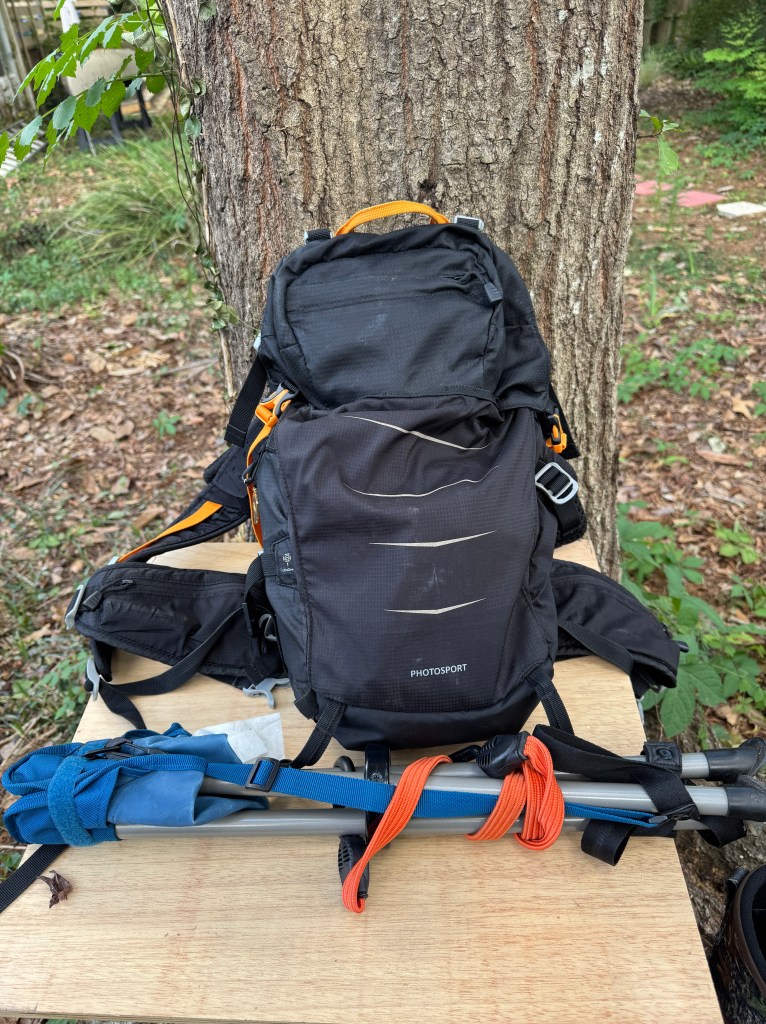 Extra kit: For extended hikes or in rough or unknown locations I take a LowePro camera bag specifically for hiking . It carries my extra lenses and other equipment (details to follow). I occasionally carry a small foldable camp stool with a bungee cord. It is handy, light and easy to park myself on if there is something I’d like to watch for a while or I just want to take a break.