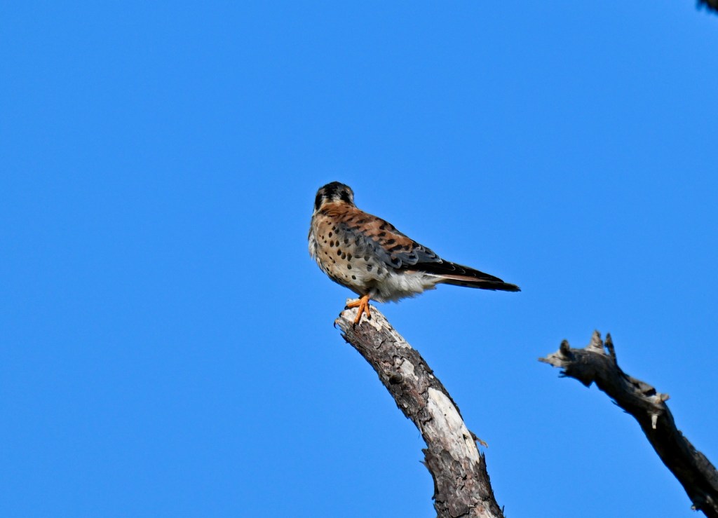 Once connected to the mainland only by rail, the Keys were visited by a growing number of tourists and it required adding a roadway atop the rail bridge. The old bridge eventually became inadequate, fell into disrepair and was closed off to all traffic when the new bridge opened. All but the American Kestrel in the lower right hand corner were in the Keys. I did see a Kestrel in the Keys, but the photo wasn’t as good as this one which I took camping on the way back. Left to right-top to bottom: Palm Warbler, Spotted Sandpiper, Brown Pelican (in its white form), Great Egret, Prairie Warbler (another long distance migrant) and the American Kestrel.