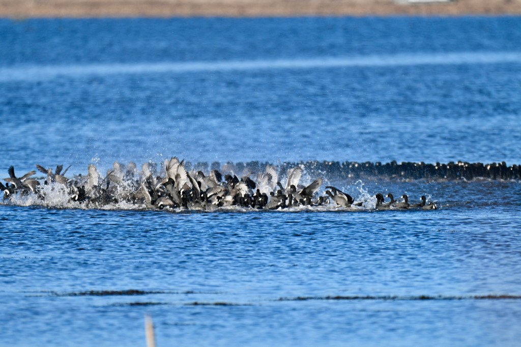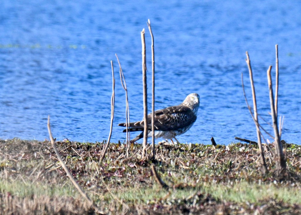 Second Try: A beautiful sunny morning and she is back terrorizing the American Coot. I spent nearly a half hour creeping into place, dropped my phone, bent to pick it up, heard the coot scrambling and glanced up to see the hunt.Again, she did not succeed in the hunt but flew into the sun right by me.