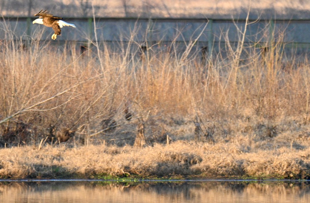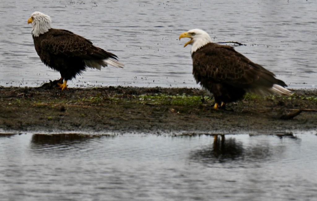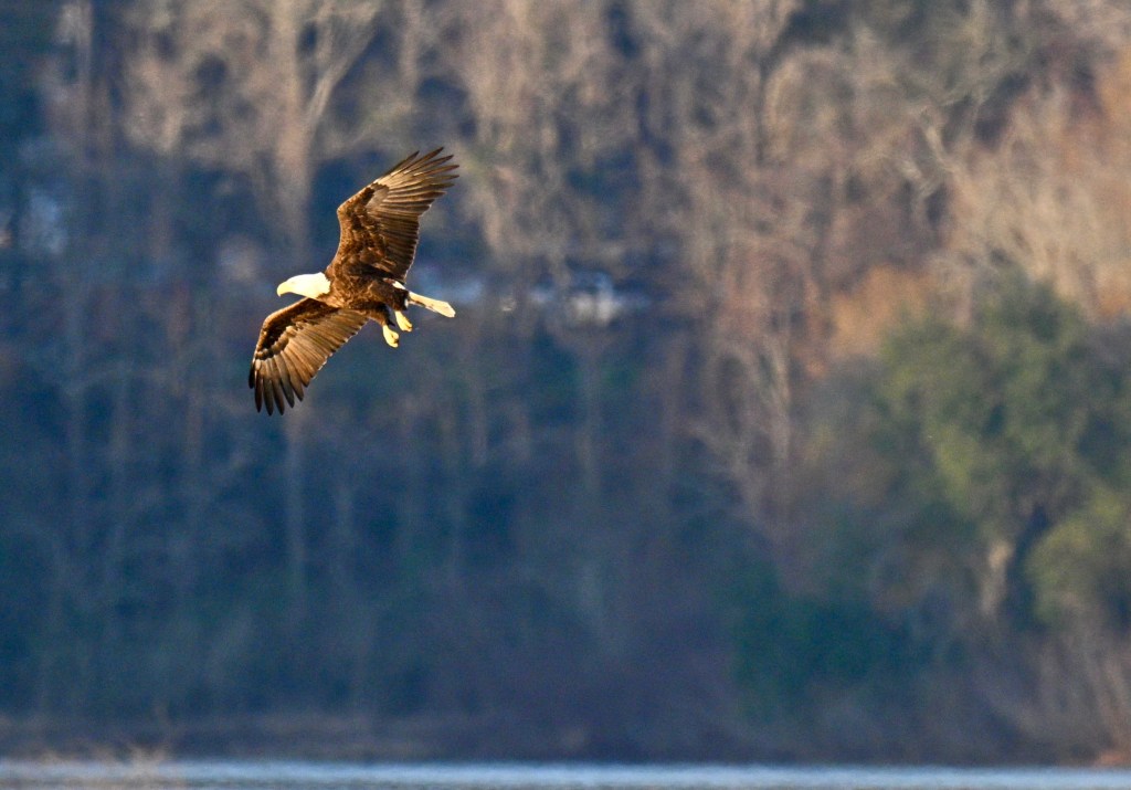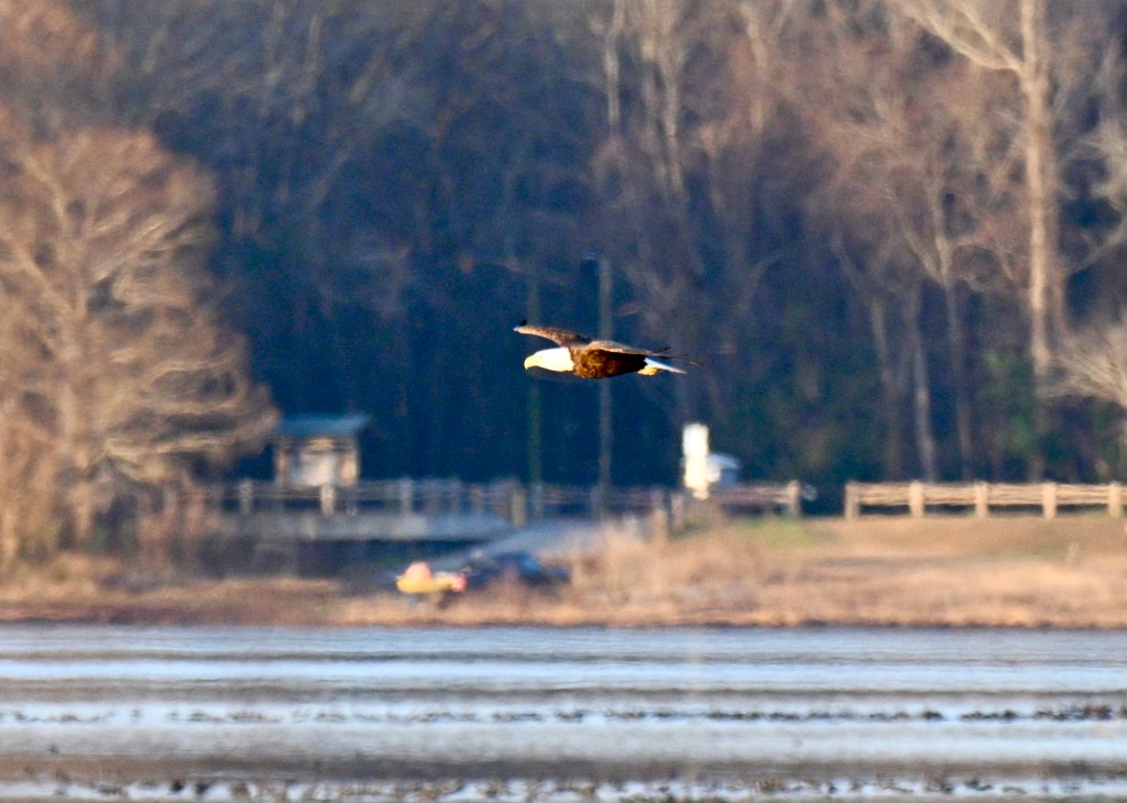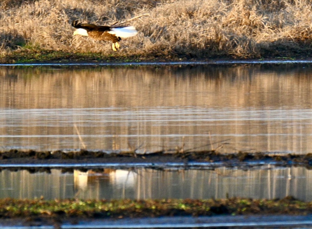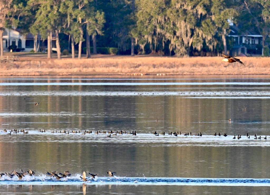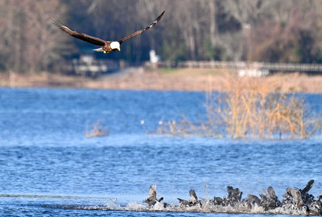 The family (two adults and one sub adult) of Bald eagles where I hike routinely hunt over what’s left of the lake. They don’t keep a schedule. They don’t post on X or Instagram when they are about to go on the hunt. They just go. All of the sudden these massive birds with 7 foot wing spans arrive and begin doing things that terrify all living creatures below. So you have to be lucky and you have prepared. When the moment happens you just might be able see what they are doing and maybe…just maybe catch the drama on camera.